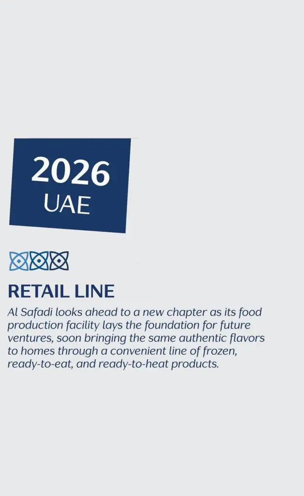 Behind every plate is a person; behind every success is a family. Today, Al Safadi is powered by a team representing more than 18 nationalities, including long-serving members who have been with us for nearly three decades. Whether it is our chefs perfecting the family recipes or our service teams greeting you like family, our people are the heartbeat of everything we do. This human foundation is central to the group’s identity and remains the driving force behind what comes next.
