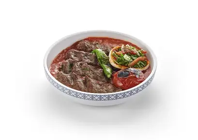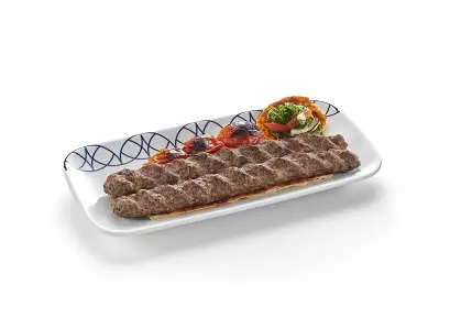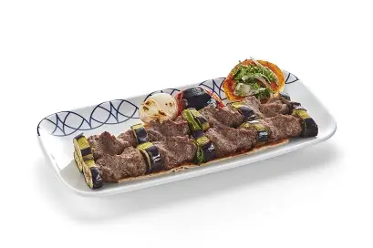 Grilled meat kabab, green chili, eggplant, onion, & tomato