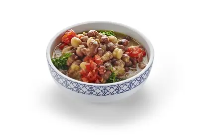 Fava beans seasoned with lemon juice & garlic