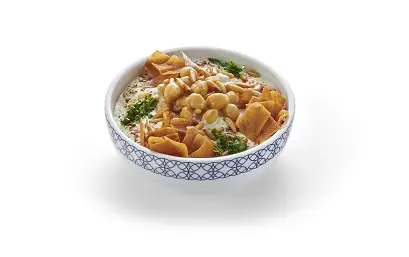 Chickpeas & fried bread topped with yogurt & spices
