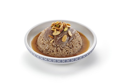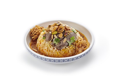 Oriental rice topped with meat & mixed nuts